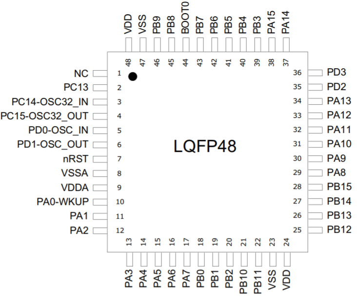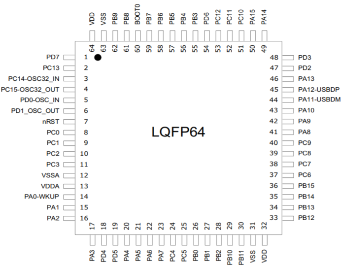 LQFP64 引腳分布 LQFP48 引腳分布