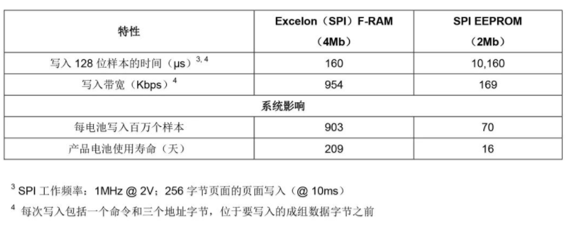 表1:比較FRAM和EEPROM的系統(tǒng)影響總結