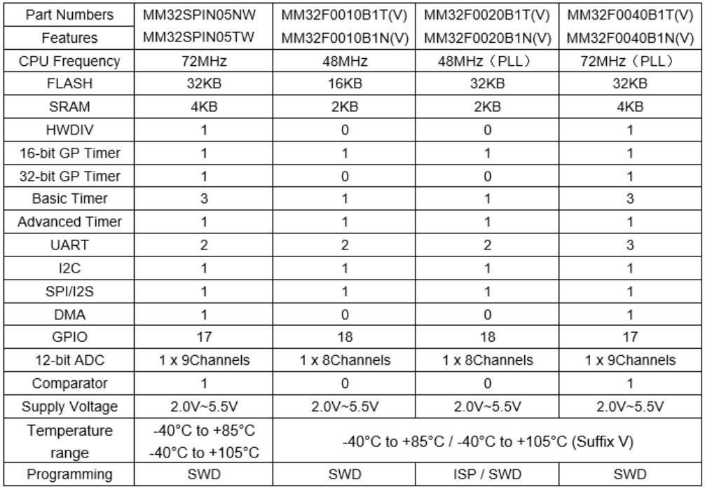 MM32F0020 的封裝相同,但在性能和外設(shè)上還是有不少不同之處的,部分可以參照下表所示。此外 MM32F0040 還增加了 MM32F0020 所不具有的外設(shè)功能,比如硬件除法器、比較器、32 位定時(shí)器等。所以項(xiàng)目之初做好評(píng)估,在硬件設(shè)計(jì)時(shí)做好兼容,在替換的時(shí)候,需要結(jié)合項(xiàng)目實(shí)際的硬件需求,做好對(duì)比;滿足條件的情況下,可以進(jìn)行升級(jí)。更多詳情可咨詢靈動(dòng)微官方代理商英尚微電子。