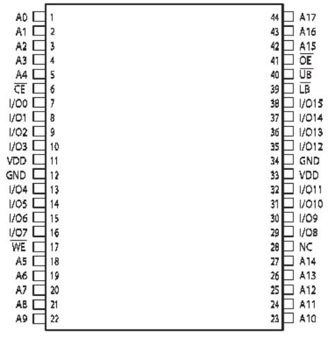 芯片使能輸入CE和輸出使能輸入OE可方便實現(xiàn)存儲器的擴展。低電平有效的寫使能( WE )控制著存儲器的寫和讀操作。高字節(jié)(UB)和低字節(jié)(LB )控制信號控制著對數(shù)據(jù)字節(jié)的訪問。